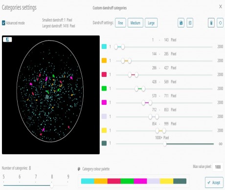 頭皮屑測試儀Dandruff Meter DA20為人們研究頭皮屑提供了一種簡單快速的分析方法。頭發護理是化妝品行業的一個大的領域,分析護發產品的去屑功效是研究護發產品過程中非常重要的一個方面,通過測試使用護發去屑產品前后頭皮屑的數量變化,可以為護發、去屑產品的研制提供一個科學的依據。