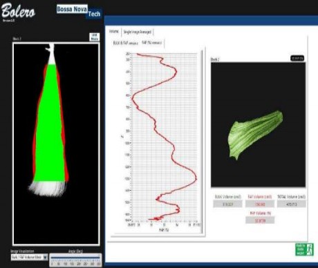 由于發束是由許多根邊界劃分不明確的單根頭發構成,發束分析非常困難,幾乎不可能用 一個3D掃描儀重建發束的3D形態。發束體積測試系統BOLERO是一個發束3D形態重建和卷 曲程度分析系統。通過分析發束不同角度拍攝的圖像的光的透射程度的變化情況評估頭發的 密度,測出發束的體積,卷曲部分體積占全部體積的百分比。